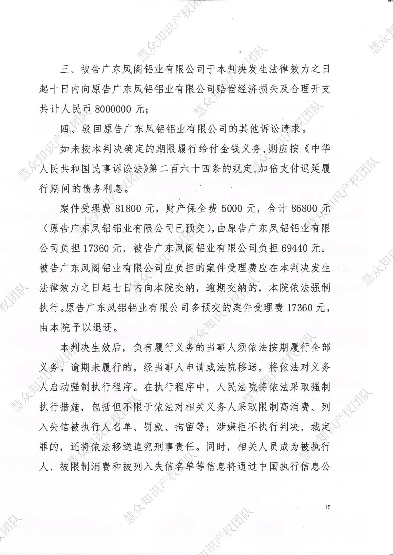 延边朝鲜族自治州判赔800万!辉知队代理“凤铝”商标维权案胜诉